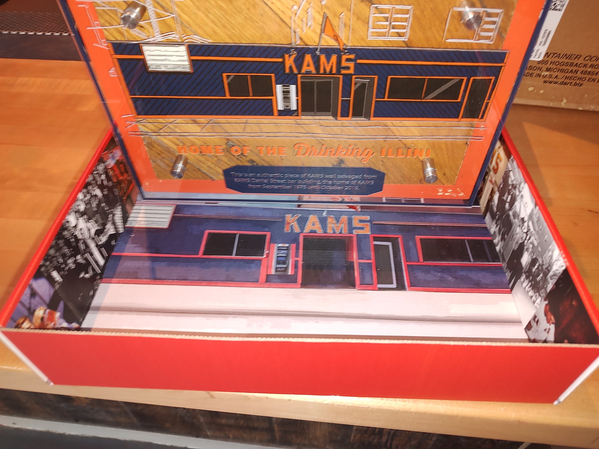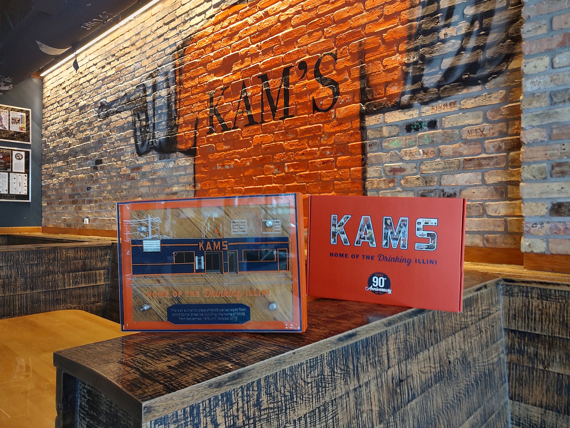 The wall piece comes in a unique commemorative KAMS full color custom box and all are individually numbered 1 to 90. The box has photos from the past 90 years with an artists digital painting of the Daniel Street bar on the inside bottom of the box. Comes with a pair of KAMS winter gloves!